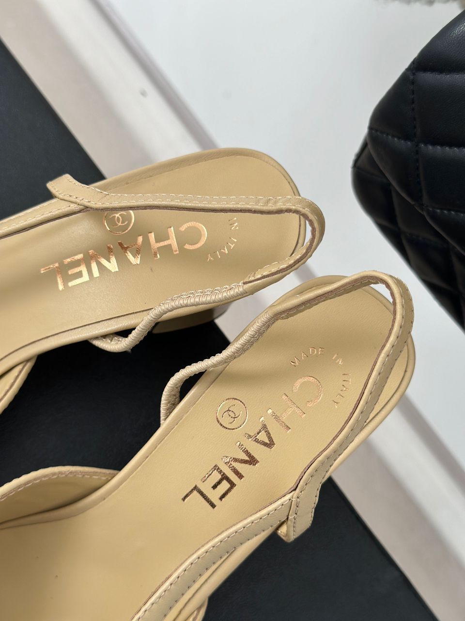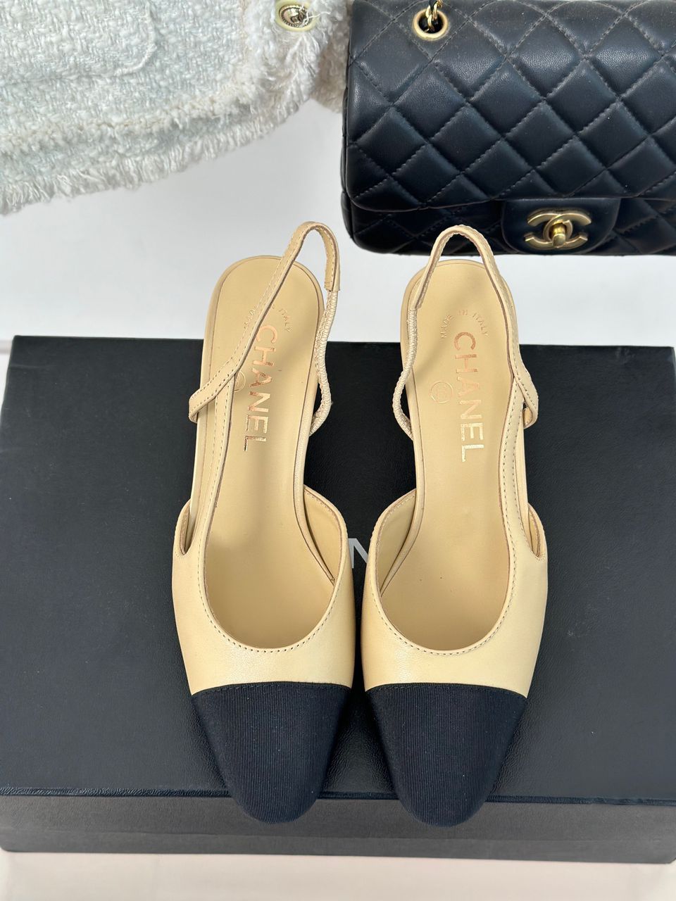 Tacones Chanel Slingback para Mujer – Punta Negra y Cuero Beige